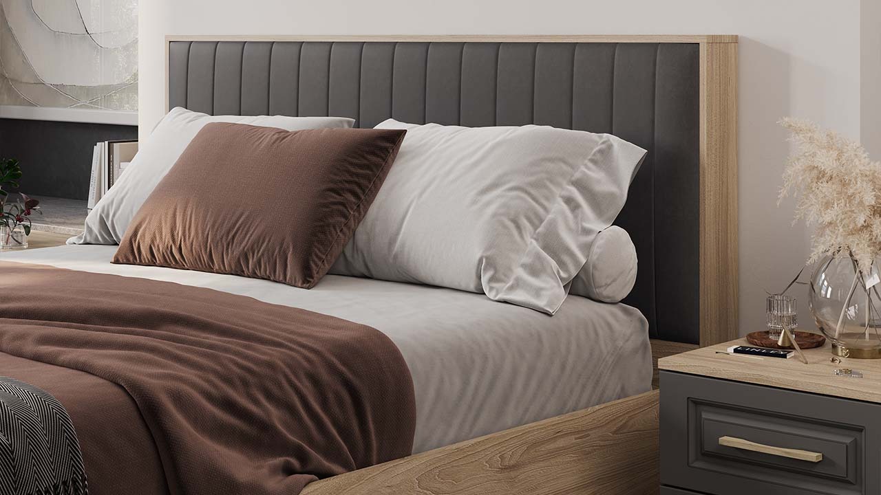Модульность. Коллекция «Сэнди» включает в себя прикроватную тумбу, комод с выдвижными ящиками и вместительные шкафы: трехстворчатый шкаф с металлической штангой и полками, шкаф для одежды и шкаф для белья, которые позволят создать дополнительное и удобное место для хранения. Каркас кровати, украшенный изысканным мягким изголовьем, полностью гармонирует со всеми элементами коллекции, позволяя создать привычную, уютную атмосферу.