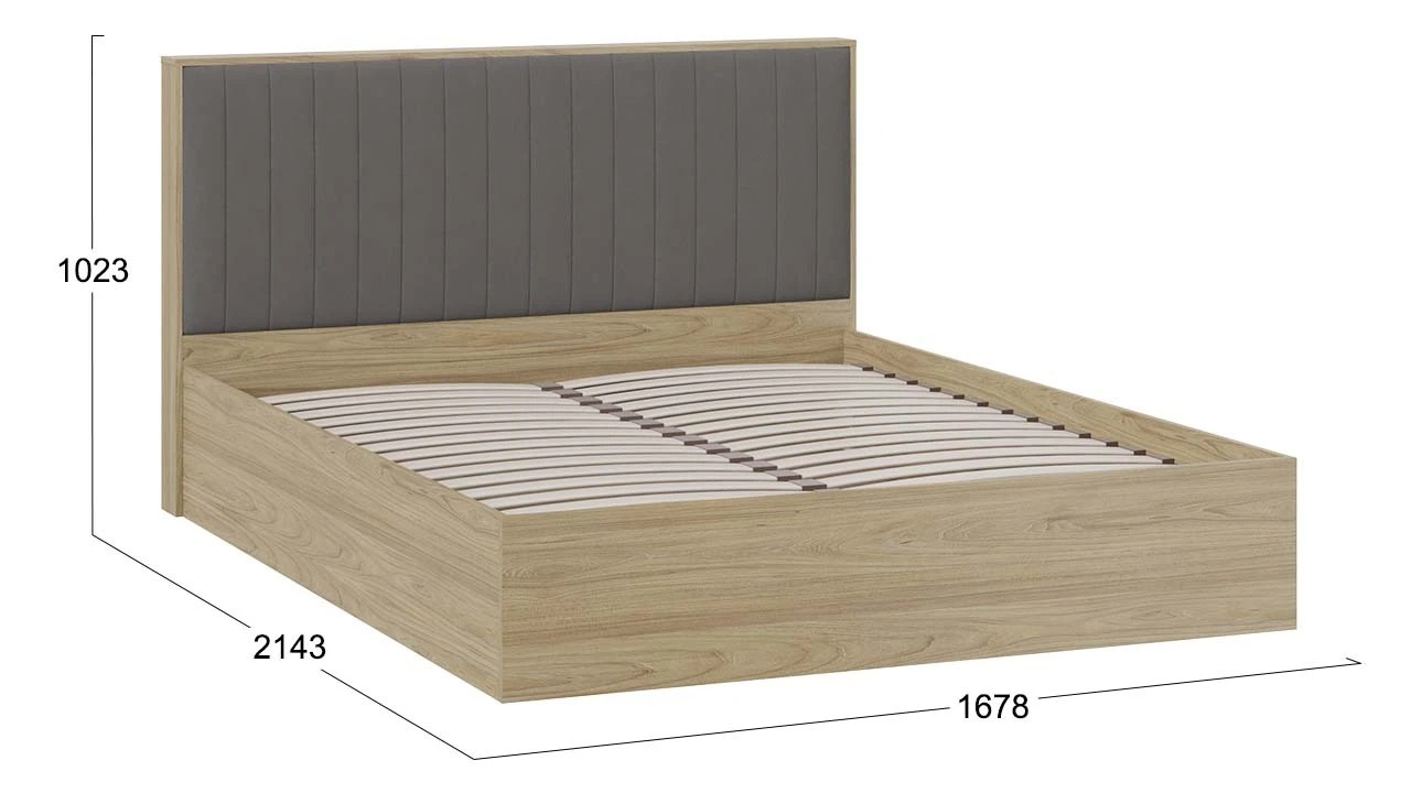 Кровать без ПМ «Сэнди» 1600 Тип 2 (без подъемного механизма) Вяз благородный, Велюр Графит – 1 шт.