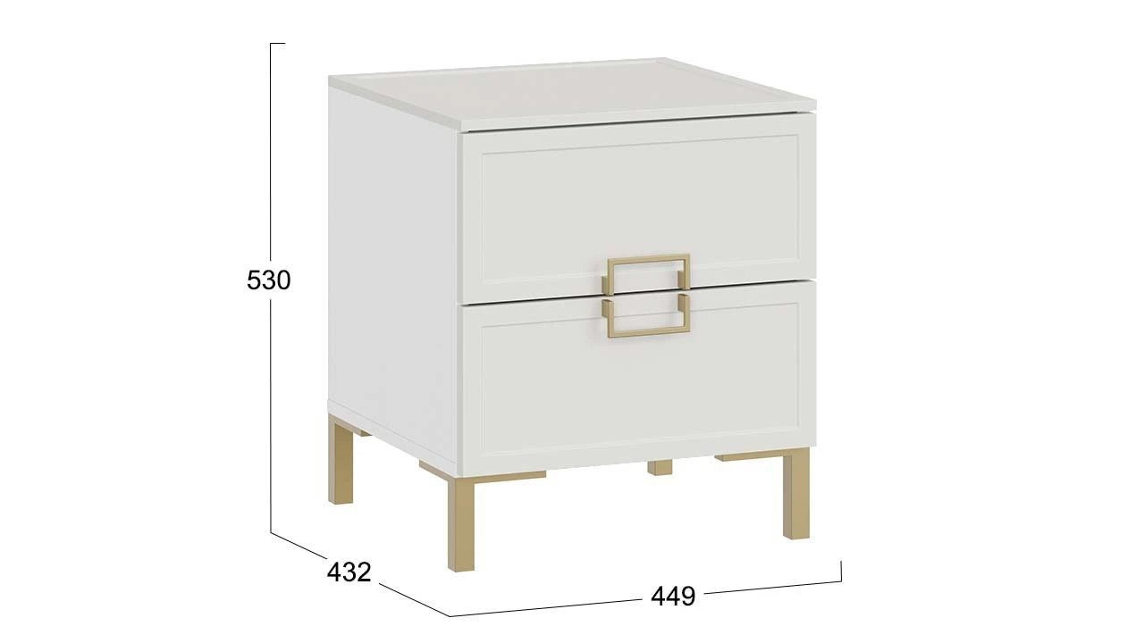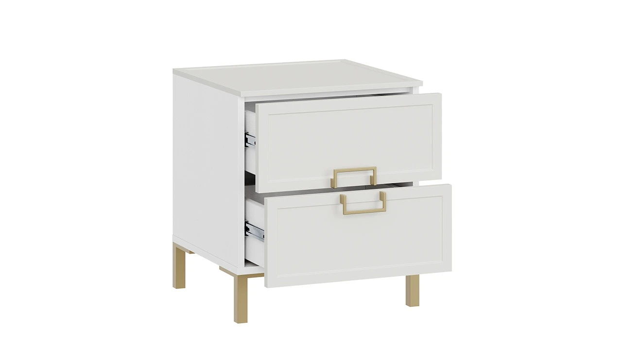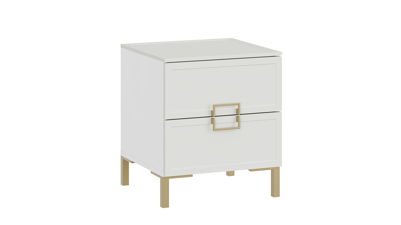 Тумба прикроватная «Стелла» с опорами Золото розовое, Белый холст, Белый Жемчуг – 2 шт.
