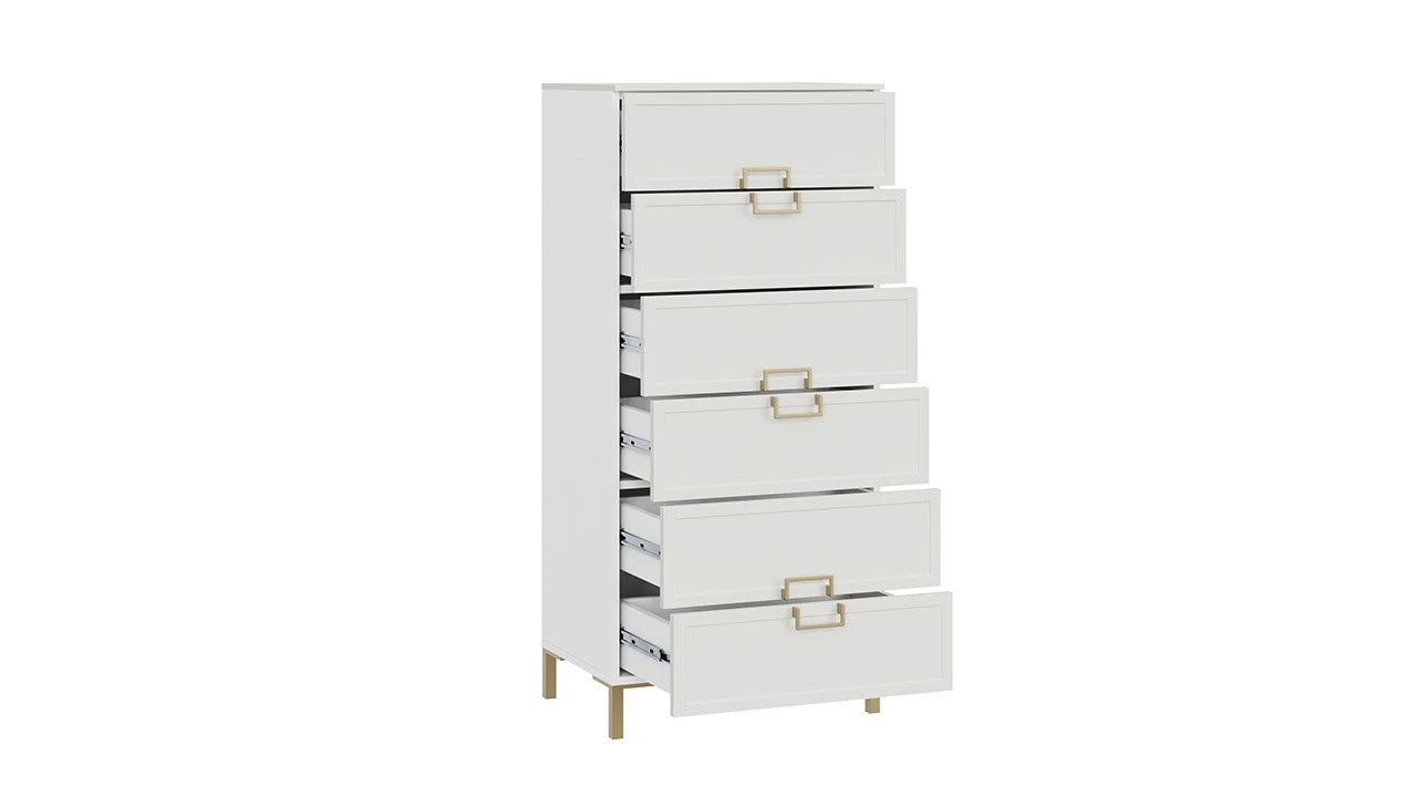 Комод «Стелла» с опорами Золото розовое, Белый холст, Белый Жемчуг – 1 шт.