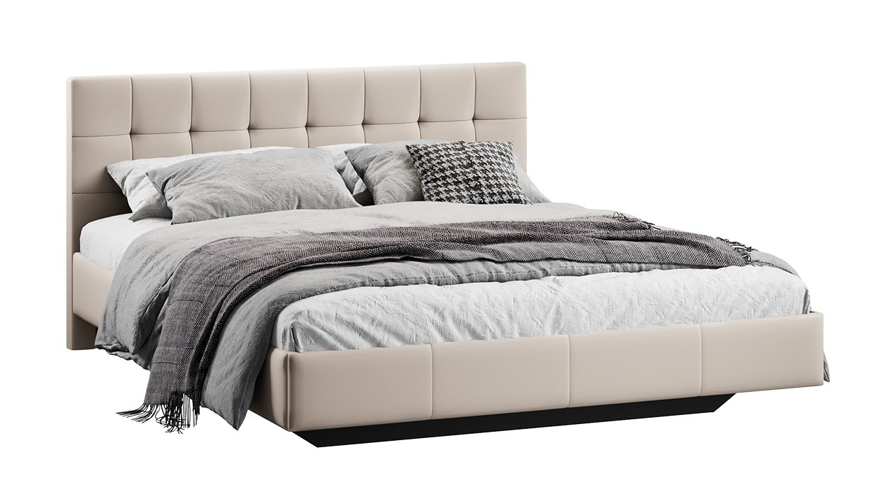 Новые кровати с универсальным и фантазийным рисунком, будут выглядеть уместно в любом помещении и интерьере. С ними Вы легко сможете создать располагающую обстановку к комфортному отдыху. Дизайн: В дизайне изголовья использован универсальный вариант декора, который будет выглядеть привлекательно и безупречно в любом интерьере. Геометрический узор в виде квадратов делает кровать главным элементом любой спальни, привнося в пространство четкий ритм. Конструктив кровати без подъемного механизма. Каркас каждой модели выполнен с эффектом «парения», что придает им воздушности и элегантности. Высота 130 мм от пола до царги кровати обеспечивает свободный доступ для робота-пылесоса, упрощая процесс уборки и поддержание чистоты в вашем доме. Основание «Комфорт 2.1». Разборный каркас основания без ПМ (без опор) изготовлен из плоскоклееных березовых брусков и 30-ти латофлексов, дополнительную фиксацию которым придают пластиковые латодержатели.