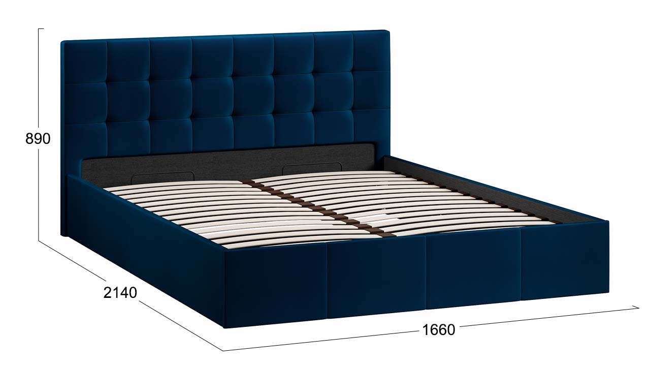 Наполнение: ДСП 16 мм, ППУ Максимальная нагрузка на 1 спальное место: до 120 кг распределенной нагрузки Рекомендуемая высота матраса: без ограничений (матрас приобретается отдельно) Эксплуатационные свойства велюра: Состав ткани полиэстер 100%, устойчивость к истиранию ≥ 44000 циклов. ДокументыСкачать паспорт (pdf 2.7 Мб) |