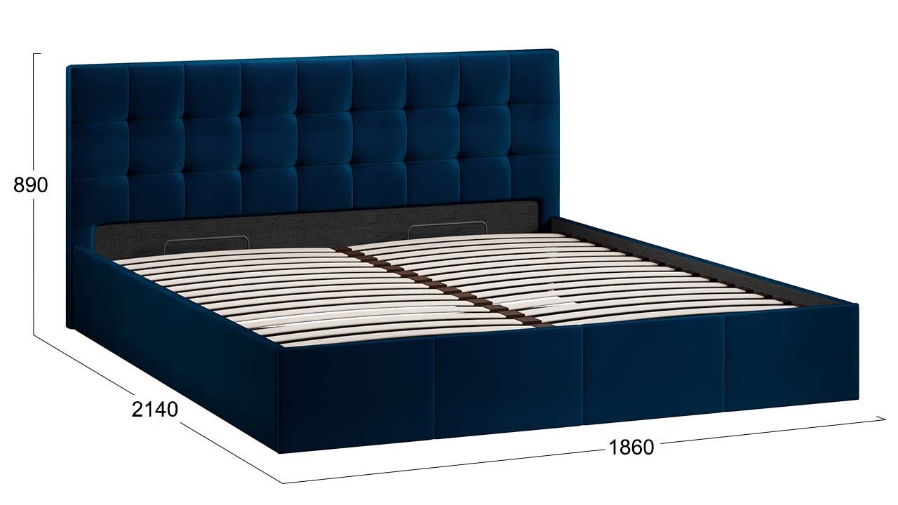 Наполнение: ДСП 16 мм, ППУ Максимальная нагрузка на 1 спальное место: до 120 кг распределенной нагрузки Рекомендуемая высота матраса: без ограничений (матрас приобретается отдельно) Эксплуатационные свойства велюра: Состав ткани полиэстер 100%, устойчивость к истиранию ≥ 44000 циклов. ДокументыСкачать паспорт (pdf 2.7 Мб) |