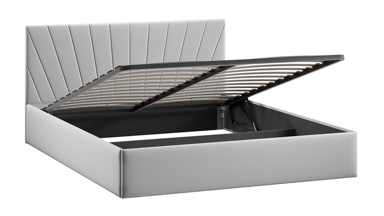 Новые кровати с универсальным и фантазийным рисунком, будут выглядеть уместно в любом помещении и интерьере. С ними Вы легко сможете создать располагающую обстановку к комфортному отдыху. Дизайн: Мягкое изголовье кровати выделяется необычным дизайном, где строчка, напоминающая лучи солнца, создает впечатление легкости и уюта и придает интерьеру выразительный стилистический акцент. Материал обивки имеет приятную фактуру, выглядит роскошно и элегантно. Конструктив кровати с подъемным механизмом. В конструкции кроватей предусмотрено основание с ПМ и заглушина, состоящая из одной детали ДВП, которая располагается в изножье и не имеет крепление к каркасу кровати. Дно из ДВП поможет организовать место для хранения и сохранить порядок в кровати. Основание ИП 462-02 исп .3 Разборный каркас основания с подъемным механизмом изготовлен из металла и 28-ми латофлексов, дополнительную фиксацию которым придают пластиковые латодержатели. В комплекте находятся газлифты с мощностью 1000 ньютонов.