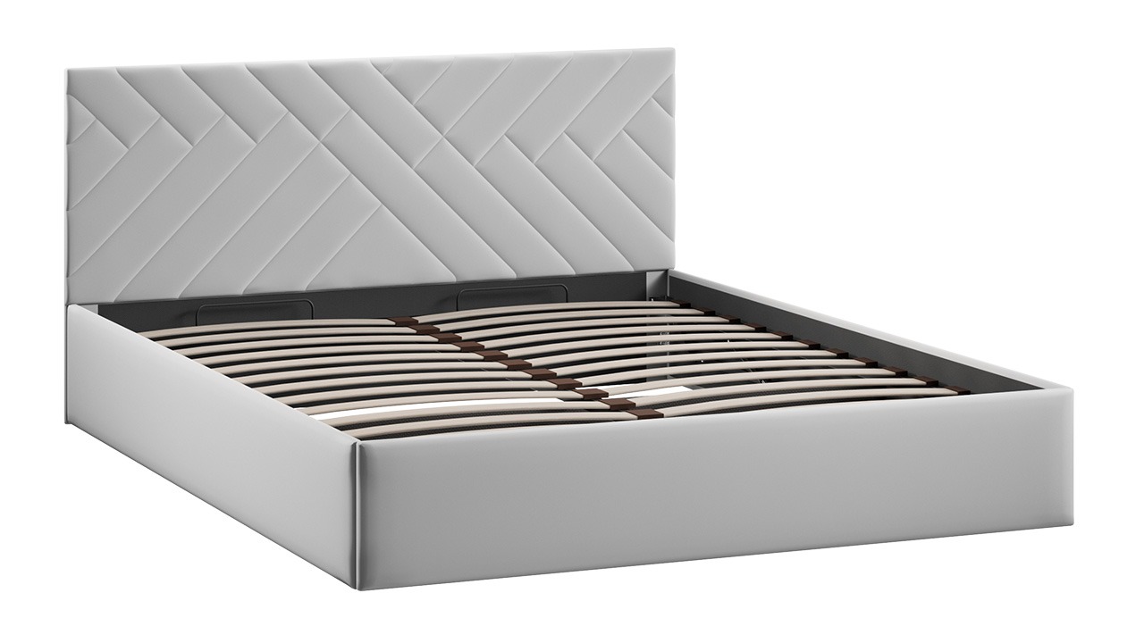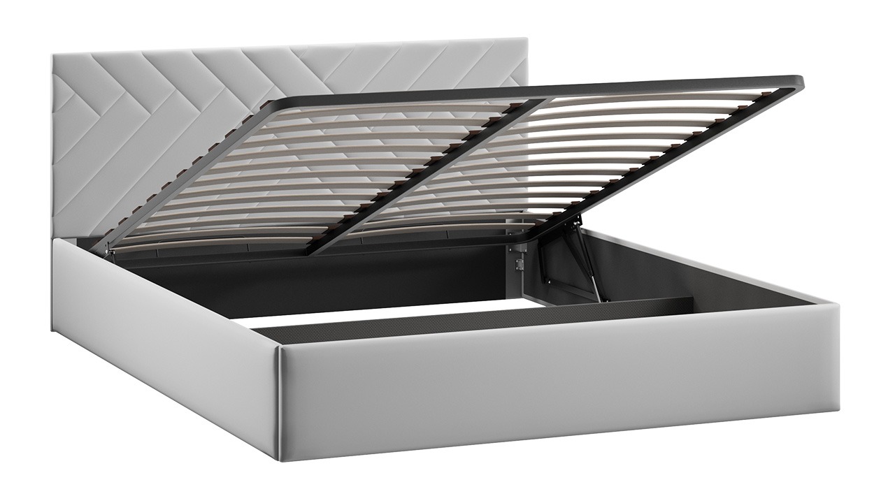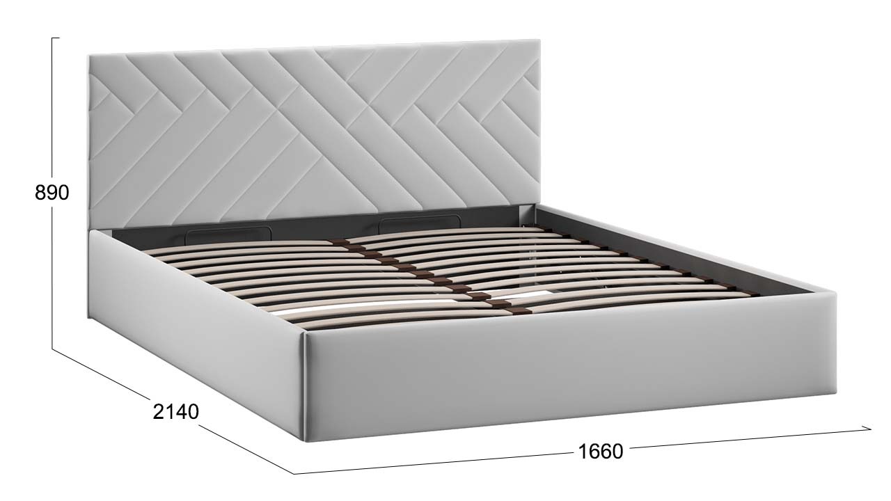 Новые кровати с универсальным и фантазийным рисунком, будут выглядеть уместно в любом помещении и интерьере. С ними Вы легко сможете создать располагающую обстановку к комфортному отдыху. Дизайн: Особое внимание привлекает изголовье модели, выполненное в нежном велюре. Фантазийный узор в виде переплетений делает кровать центральным элементом вашей спальни, привнося в пространство четкий динамичный образ. Конструктив кровати с подъемным механизмом. В конструкции кроватей предусмотрено основание с ПМ и заглушина, состоящая из одной детали ДВП, которая располагается в изножье и не имеет крепление к каркасу кровати. Дно из ДВП поможет организовать место для хранения и сохранить порядок в кровати. Основание ИП 462-02 исп .3 Разборный каркас основания с подъемным механизмом изготовлен из металла и 28-ми латофлексов, дополнительную фиксацию которым придают пластиковые латодержатели. В комплекте находятся газлифты с мощностью 1000 ньютонов.