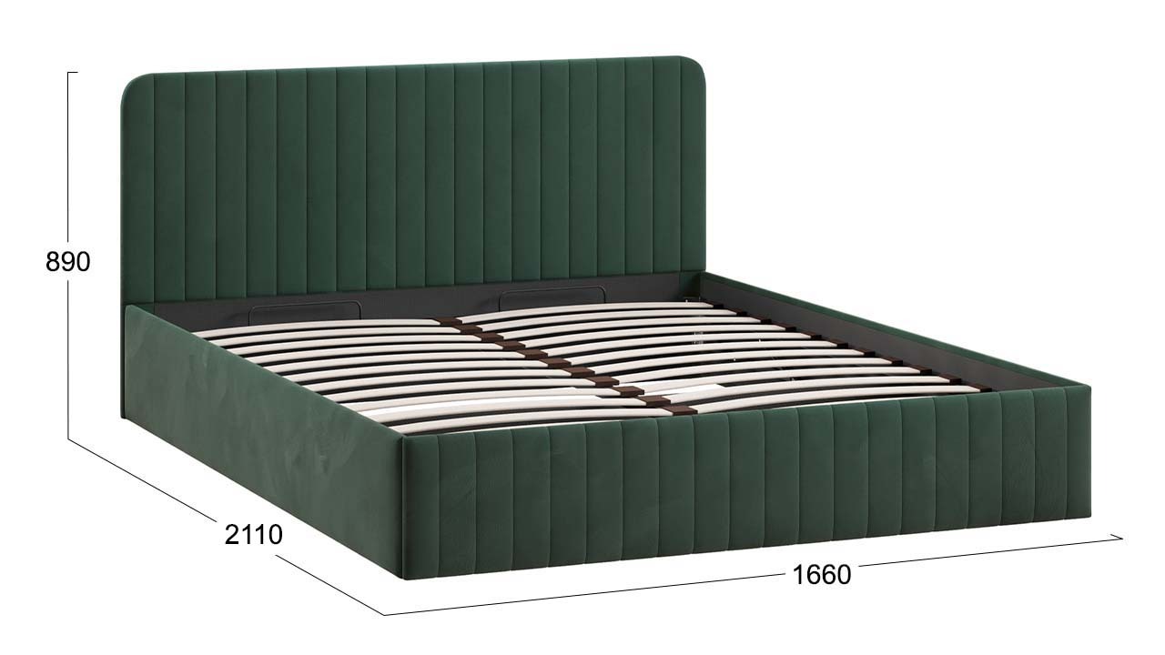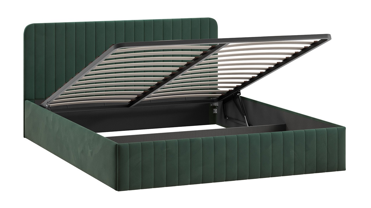 Новые кровати с универсальным и фантазийным рисунком, будут выглядеть уместно в любом помещении и интерьере. С ними Вы легко сможете создать располагающую обстановку к комфортному отдыху. Дизайн: Вертикальные линии прострочки изголовья создают в интерьере атмосферу стабильности и гармонии, а скругленные края спинки делают её безопасной и придают спальне особый уют. Разнообразие палитры велюра позволит найти решение, которое идеально впишется в интерьер любой колористики. Конструктив кровати с подъемным механизмом. В конструкции кроватей предусмотрено основание с ПМ и заглушина, состоящая из одной детали ДВП, которая располагается в изножье и не имеет крепление к каркасу кровати. Дно из ДВП поможет организовать место для хранения и сохранить порядок в кровати. Основание ИП 462-02 исп .3 Разборный каркас основания с подъемным механизмом изготовлен из металла и 28-ми латофлексов, дополнительную фиксацию которым придают пластиковые латодержатели. В комплекте находятся газлифты с мощностью 1000 ньютонов.