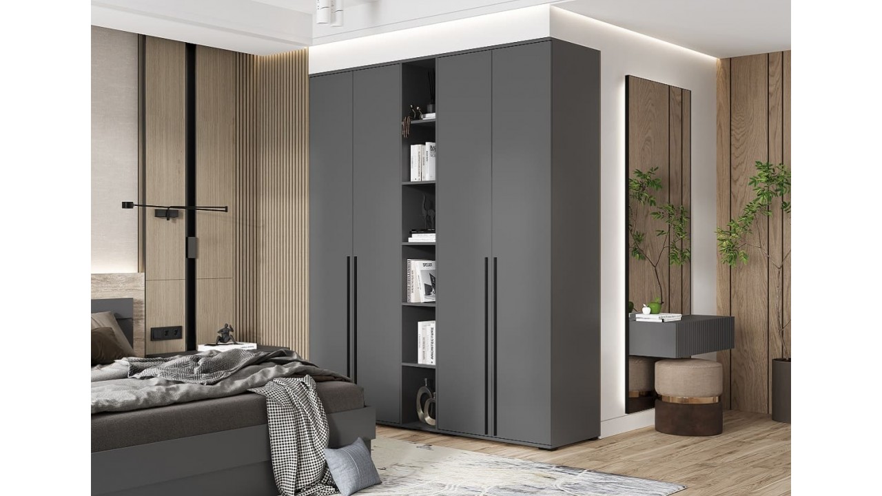 | Цвет фасадаГрафит матовый | Материал каркасаЛДСП | Материал кромкиПротивоударная ПВХ 0,5 мм |