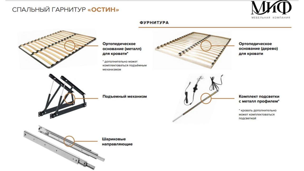 Все модули для спальни комплектуются необходимой фурнитурой для сборки, и подробной инструкцией для сборки.