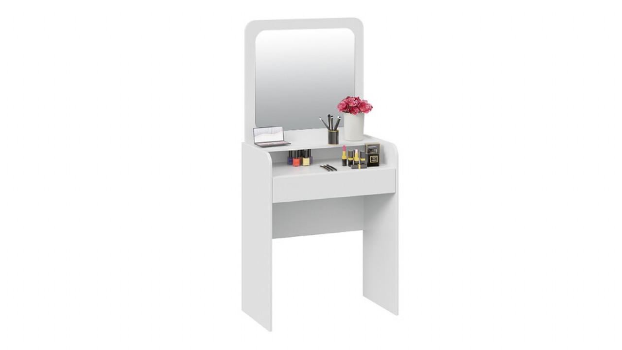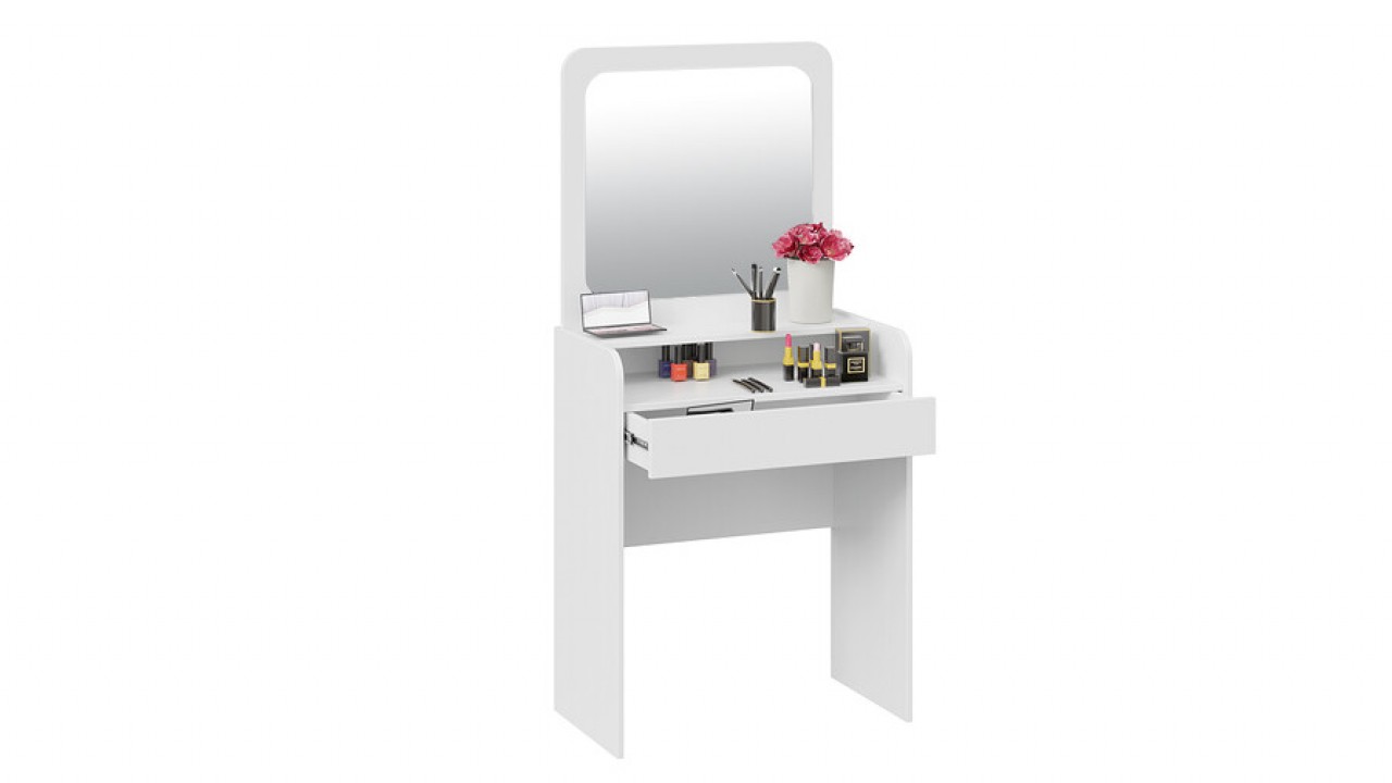 Функциональность. Помимо внешней привлекательности стол имеет большое зеркало, вместительную столешницу с надстройкой и выдвижной ящик для хранения парфюмерии, украшений и многого другого. В этом туалетном столике нет ничего лишнего, только самое необходимое для уголка женской красоты.